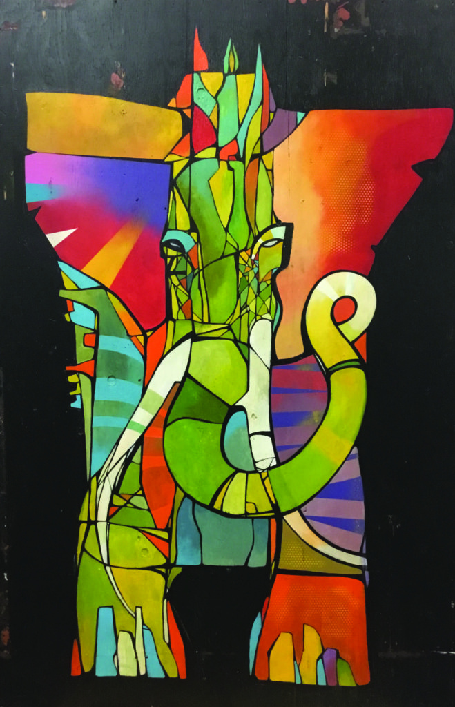 木製パネルの上にミクストメディア、2017年制作