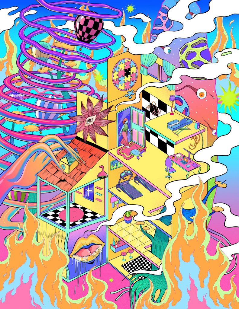Crystal Bao is an award winning NYC illustrator who’s lived in London and Shanghai. Her vibrant, colorful and psychedelic style explores themes of self-identity and human emotions. Crystal’s work combines bold colors, ceremonial energy, and humor to transform everyday moments into imaginative, story-rich visuals. She has collaborated with clients such as Live Nation, Society of Illustrators, Visual Opinion, and Pineapple NewYork. As President of School of Visual Arts’ “Women Supporting Women Club,” she has empowered fellow artists to build creative communities through their artwork. When Crystal isn’t drawing, she enjoys playing the piano, karate, and ice skating.